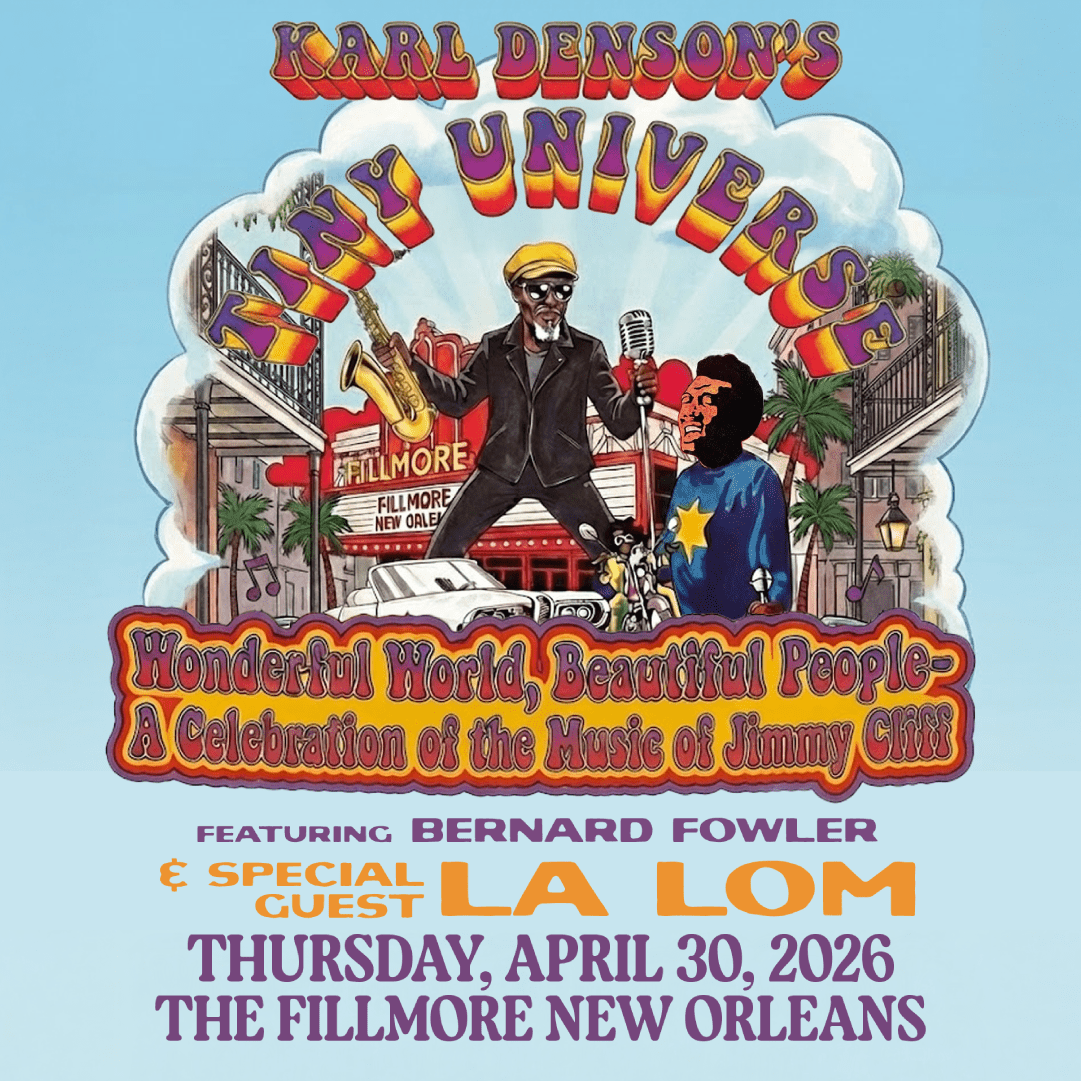 Karl Denson's Tiny Universe presents Wonderful World, Beautiful People - A Celebration of the Music of Jimmy Cliff featuring Bernard Fowler of The Rolling Stones and special guest LA LOM! Tickets on sale now through The Fillmore! Don't miss this special show during Jazzfest!  ...